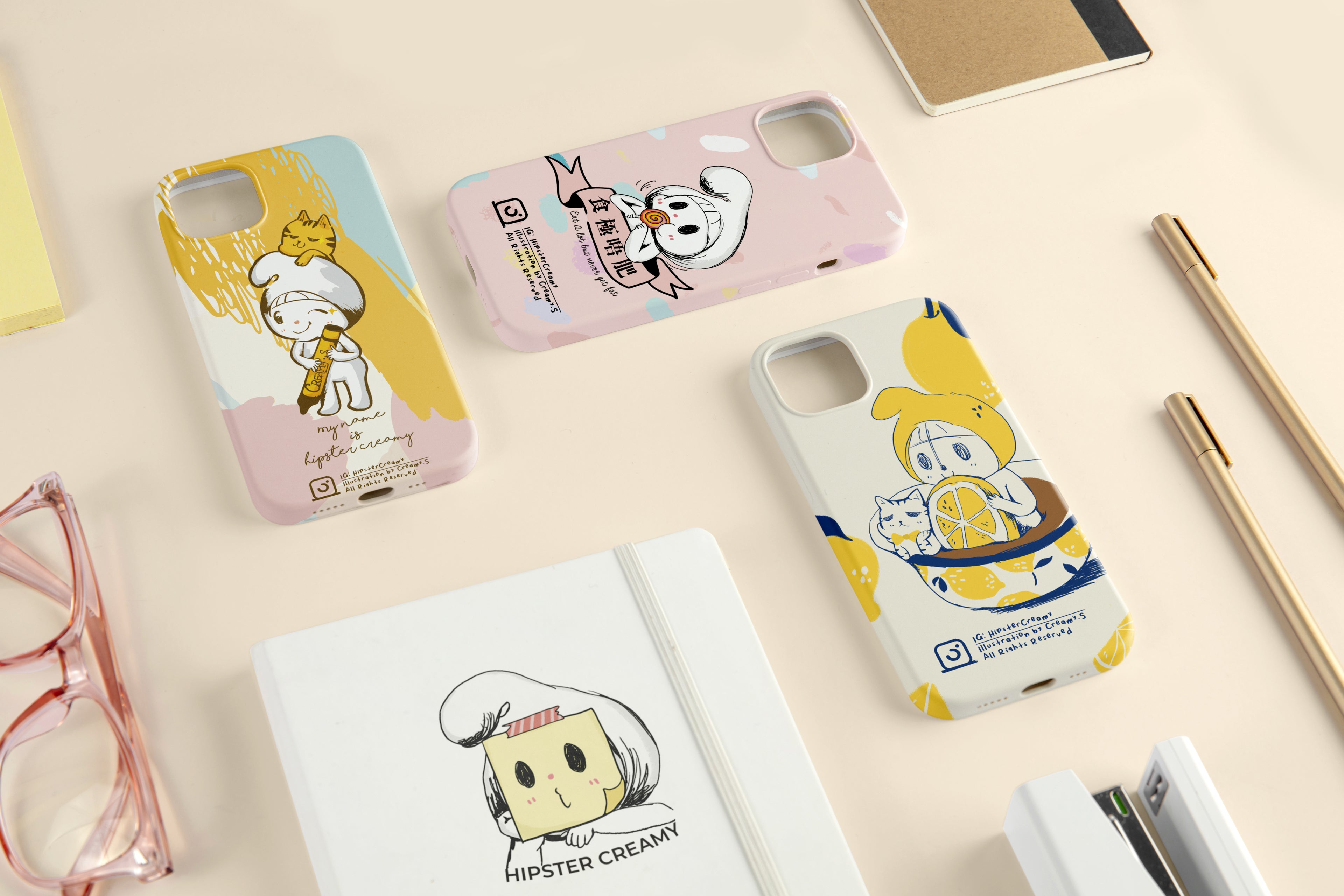 This is an illustration collection, featuring the Hipster Creamy illustration character into different products.